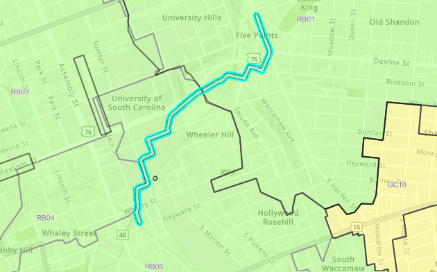The East Rocky Branch Sewer Improvements Phase 1 (Upper Phase) project consists of upsizing the existing piping for a distance of approximately 7,500 linear feet with new 36-inch diameter gravity sewer, generally located along Rocky Branch. The project begins in the Five Points area at the intersection of Santee Ave and Harden St and terminates at the intersection of Main St and Whaley St. This project was identified as part of the collection system hydraulic modeling study (Hazen and Sawyer, 2014).